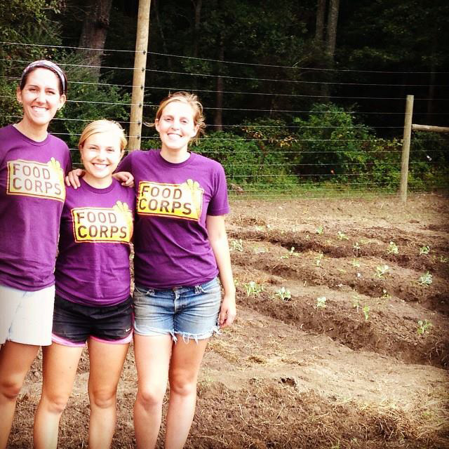 Tasting pumpkin hummus, putting up fencing around a high school garden and singing songs about fruits and vegetables – these are just a few of the daily activities of a FoodCorps North Carolina Service Member. FoodCorps is a national non-profit that partners with state organizations to place emerging leaders in local communities to nurture a child’s relationship with healthy food. Service members dedicate a year or more of service in low-resource schools to build and tend gardens, teach hands-on food and nutrition education and build pathways with local farms to source to school cafeterias. This three-pillar approach has shown that kids are more willing to try and taste fruits and vegetables and can positively impact their lives.